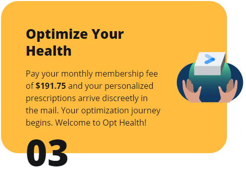 "Before Opt Health I was tired and could barely make it through 12 noon before needing a nap. I lacked energy and motivation. Since being with Opt Health for the last few months, my energy has increased, I no longer nap, I’m more present and available for my wife and children, and my overall attitude and demeanor has changed. Opt helped with my thyroid, vitamin deficiencies, and testosterone.